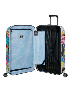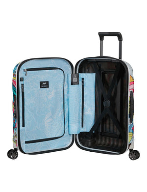 This collection showcases two limited-edition doodle-style designs in two sizes (55cm and 75cm), presenting a striking visual contrast between “Day” and “Night.” The white “Daylight” edition bursts with Vexx’s signature colour palette and whimsical characters, while the black “Nightfall” edition offers a deeper, more mysterious interpretation, reflecting the artist’s skill in playing with light, shadow, and emotion. Inside each suitcase, travellers will find a subtle continuation of the artwork, with the same print adorning the inner fabric.